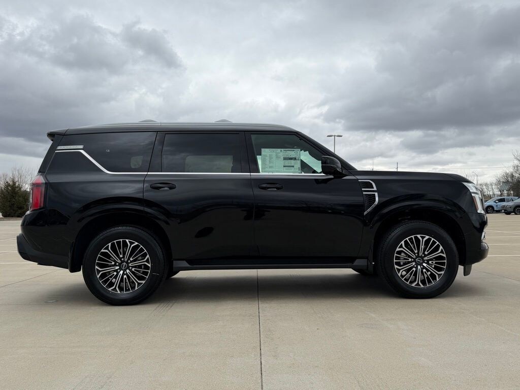 4WD. Captain's Chair Seat Package (2nd Row Center Console with Two Cupholders, 2nd Row Outboard Captain's Chairs with Armrests, and EZ Flex Second Row Seating System with One Touch Release), ProPILOT Assist 2.1 (3D Around View Monitor, Ambient Lighting with Multicolor Illumination, and Heads-Up Display), 4WD, 12 Speakers, 3rd row seats: split-bench, 4-Wheel Disc Brakes, ABS brakes, Air Conditioning, Alloy wheels, AM/FM radio: SiriusXM w/360L, Anti-whiplash front head restraints, Apple CarPlay/Android Auto, Auto High-beam Headlights, Auto tilt-away steering wheel, Auto-dimming door mirrors, Auto-dimming Rear-View mirror, Auto-leveling suspension, Automatic temperature control, Brake assist, Bumpers: body-color, Carpeted Floor Mats with Captain Chairs, Center Front Spoiler, Compass, Cross Bars, Delay-off headlights, Driver door bin, Driver vanity mirror, Dual front impact airbags, Dual front side impact airbags, Electronic Stability Control, Emergency communication system: NissanConnect Services, Four wheel independent suspension, Front anti-roll bar, Front Bucket Seats, Front Center Armrest, Front dual zone A/C, Front reading lights, Fully automatic headlights, Garage door transmitter: myQ Connected Garage, Genuine wood dashboard insert, Heated door mirrors, Heated Front Bucket Seats, Heated front seats, Heated steering wheel, HVAC memory, Illuminated entry, Knee airbag, Leather steering wheel, Low tire pressure warning, Memory seat, Navigation system: Google Maps, Occupant sensing airbag, Outside temperature display, Overhead airbag, Overhead console, Panic alarm, Passenger door bin, Passenger vanity mirror, Power door mirrors, Power driver seat, Power Liftgate, Power passenger seat, Power steering, Power windows, Radio: NissanConnect with SiriusXM 360L, Rain sensing wipers, Rear air conditioning, Rear anti-roll bar, Rear Bumper Protector, Rear reading lights, Rear seat center armrest, Rear window defroster, Rear window wiper, Reclining 3rd row seat, Remote keyless entry, Security system, Speed control, Speed-sensing steering, Speed-Sensitive Wipers, Splash Guards, Split folding rear seat, Spoiler, Steering wheel memory, Steering wheel mounted audio controls, Tachometer, TailorFit Seat Trim, Telescoping steering wheel, Tilt steering wheel, Traction control, Trip computer, Turn signal indicator mirrors, Variably intermittent wipers, Voltmeter, and Wheels: 20" x 8.5J Machined and Painted Alloy.
