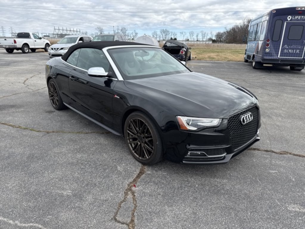 Brilliant Black 2015 Audi S5 3.0T Premium Plus quattro quattro 7-Speed Automatic S tronic 3.0L TFSI V6 DOHC 8.5J x 18" 5-Parallel-Spoke S-Design Wheels, Air Conditioning, Audi First Aid Kit, Audi Side Assist, Auto-dimming door mirrors, Automatic temperature control, Brake assist, Bumpers: body-color, Compass, Convertible roof wind blocker, Driver door bin, Driver vanity mirror, Electronic Stability Control, Front Bucket Seats, Front Center Armrest, Front dual zone A/C, Front fog lights, Front reading lights, Garage door transmitter: HomeLink, Glass rear window, HDD Navigation w/o Voice Control, Heated door mirrors, Heated Front S Sport Seats, Heated front seats, High intensity discharge headlights: Xenon plus, Illuminated entry, Leather Shift Knob, Leather steering wheel, Memory seat, Outside temperature display, Panic alarm, Parking System w/Rearview Camera, Passenger door bin, Passenger vanity mirror, Power convertible roof, Power door mirrors, Power driver seat, Power passenger seat, Power steering, Power windows, Radio: 1 CD/DVD-Player & HD, Rain sensing wipers, Rear air conditioning, Rear fog lights, Rear reading lights, Rear window defroster, Remote keyless entry, Security system, Speed control, Speed-Sensitive Wipers, Split folding rear seat, Sport steering wheel, Steering wheel mounted audio controls, Supercharged Badges, Tachometer, Technology Package, Telescoping steering wheel, Tilt steering wheel, Trip computer, Turn signal indicator mirrors, Variably intermittent wipers, Wheels: 9.0J x 19" 5-Arm Rotor Design Titanium Finish.