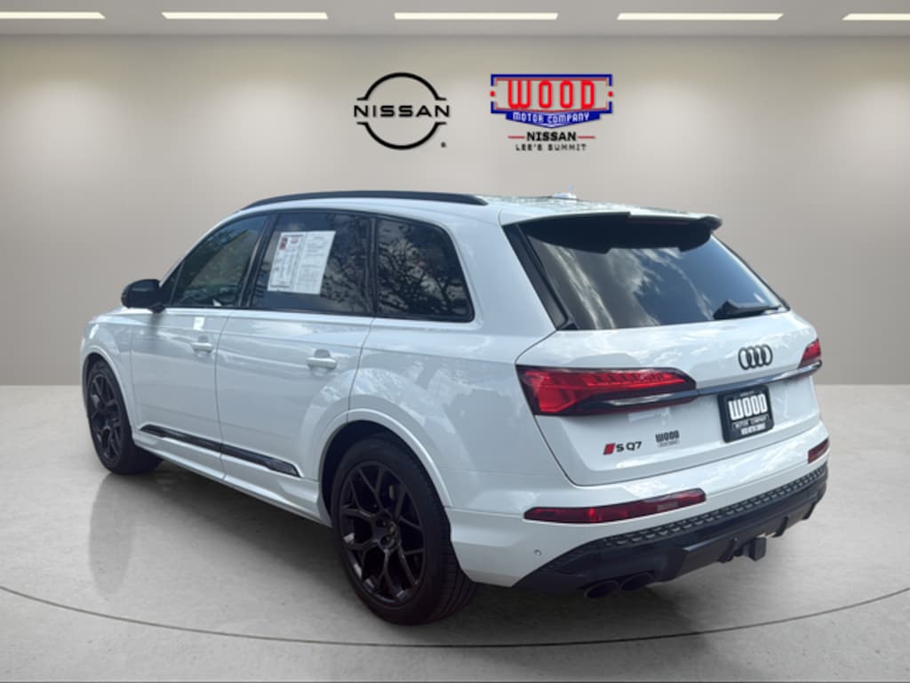 **$99,290 Original MSRP**, Executive Package, Black Optic Package, Sports Exhaust Resonator Kit, Anthracite Gray Audi Rings, Bang & Olufsen Premium Sound System, Black Exterior Trim, Dual-Pane Acoustic Glass for Side Windows, Front & Rear Door Audi S Beam, Heated Rear Seats, Rear Door/Side Windows & Tailgate Sunshades, Traffic Sign Recognition, Trailer Hitch, Ventilated Front Seats, Wheels: 21" 6-Y-Spoke Design Black Finish. Glacier White Metallic 2025 Audi SQ7 Premium Plus quattro quattro 8-Speed Automatic with Tiptronic 4.0L V8 Turbocharged DOHC 32V LEV3-ULEV125 500hp