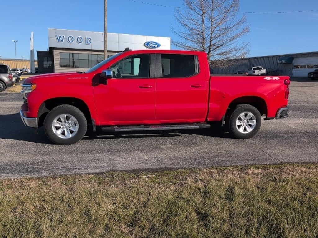 Red Hot 2023 Chevrolet Silverado 1500 LT LT1 4WD 10-Speed Automatic EcoTec3 5.3L V8 10-Speed Automatic, 4WD, Black Cloth, 10-Way Power Driver Seat w/Lumbar, 12.3" Multicolor Reconfigurable Digital Display, 120-Volt Bed Mounted Power Outlet, 120-Volt Instrument Panel Power Outlet, 3.23 Rear Axle Ratio, Air Conditioning, All Star Edition Plus, All-Star Edition, Auto High-beam Headlights, Auto-Locking Rear Differential, Automatic temperature control, Bluetooth® For Phone, Brake assist, Chevrolet Connected Access Capable, Chrome Mirror Caps, Color-Keyed Carpeting Floor Covering, Compass, Convenience Package, Convenience Package II, Deep-Tinted Glass, Delay-off headlights, Dual Rear USB Ports (Charge Only), Dual-Zone Automatic Climate Control, Electric Rear-Window Defogger, Electrical Steering Column Lock, Electronic Cruise Control, Electronic Stability Control, EZ Lift Power Lock & Release Tailgate, Following Distance Indicator, Forward Collision Alert, Front Center Armrest w/Storage, Front dual zone A/C, Front Frame-Mounted Black Recovery Hooks, Front Pedestrian Braking, Front reading lights, Front Rubberized Vinyl Floor Mats, Fully automatic headlights, HD Rear Vision Camera, Heated door mirrors, Heated Driver & Front Outboard Passenger Seats, Heated front seats, Heated Power-Adjustable Outside Mirrors, Heated Steering Wheel, Heated steering wheel, Hitch Guidance, Hitch Guidance w/Hitch View, Illuminated entry, Inside Rear-View Mirror w/Tilt, Integrated Trailer Brake Controller, IntelliBeam Automatic High Beam On/Off, Keyless Open & Start, Lane Keep Assist w/Lane Departure Warning, LED Cargo Area Lighting, OnStar & Chevrolet Connected Services Capable, Outside temperature display, Overhead console, Panic alarm, Passenger door bin, Passenger vanity mirror, Power door mirrors, Power Front Windows w/Driver Express Up/Down, Power Front Windows w/Passenger Express Down, Power Rear Windows w/Express Down, Power Sliding Rear Window w/Rear Defogger, Power steering, Power windows, Preferred Equipment Group 1LT, Rear 60/40 Folding Bench Seat (Folds Up), Rear reading lights, Rear Rubberized-Vinyl Floor Mats, Rear step bumper, Rear window defroster, Remote keyless entry, Remote Start Package, Remote Vehicle Starter System, Security system, SiriusXM w/360L, Speed-sensing steering, Split folding rear seat, Standard Suspension Package, Standard Tailgate, Steering Wheel Audio Controls, Theft Deterrent System (Unauthorized Entry), Tilt steering wheel, Traction control, Trailering App, Trailering Package, Trip computer, Universal Home Remote, Variably intermittent wipers, Voltmeter, Wheels: 20" x 9" Painted Aluminum, Wi-Fi Hot Spot Capable, Wireless Phone Projection, Wrapped Steering Wheel.