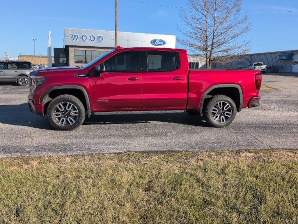 Volcanic Red Tintcoat 2024 GMC Sierra 1500 AT4 4WD 10-Speed Automatic 3.0L I6 10-Speed Automatic, 4WD, Jet Black With Kalahari Accents Leather, 10-Way Power Driver Seat Adjuster w/Lumbar, 10-Way Power Passenger Seat Adjuster w/Lumbar, 120-Volt Bed Mounted Power Outlet, 120-Volt Interior Power Outlet, 2 Charge/Data USB Ports Inside Center Console, 2 Type-C Charge-Only Rear USB Ports, 2 USB Ports, 220 Amp Alternator, 3.23 Rear Axle Ratio, Apple CarPlay/Android Auto, AT4 Preferred Package, AT4 Premium Package, Auto High-beam Headlights, Auto-dimming Rear-View mirror, Auto-Locking Rear Differential, Automatic Emergency Braking, Automatic temperature control, Bed View Camera, Black Chrome Header & Grille Insert Bars, Block heater, Brake assist, Buckle to Drive, Bumpers: body-color, Color-Keyed Carpeting Floor Covering, Compass, Deep-Tinted Glass, Delay-off headlights, Driver door bin, Driver Memory, Driver vanity mirror, Electric Rear-Window Defogger, Electronic Stability Control, Engine Block Heater, Floor-Mounted Center Console, Following Distance Indicator, Forward Collision Alert, Front Bucket Seats, Front Center Armrest, Front dual zone A/C, Front fog lights, Front Pedestrian Braking, Front Prem Floor Liners w/Removable Carpet Insert, Front Rain-Sensing Wipers, Front reading lights, Fully automatic headlights, GMC Connected Access Capable, HD Surround Vision, Heated 2nd Row Outboard Seats, Heated Driver & Front Outboard Passenger Seating, Heated front seats, Heated rear seats, Heated steering wheel, Heavy-Duty Air Filter, Hill Descent Control, Hitch Guidance, Hitch View, Illuminated entry, In-Vehicle Trailering System App, Integrated Trailer Brake Controller, Keyless Open & Start, Lane Keep Assist w/Lane Departure Warning, LED Cargo Area Lighting, Memory seat, Multicolor 15" Diagonal Head-Up Display, Navigation System, Off-Road High Clearance Step (LPO), Off-Road Suspension, OnStar & GMC Connected Services Capable, Outside temperature display, Overhead console, Panic alarm, Passenger door bin, Passenger vanity mirror, Perforated Front Leather Seat Trim, Perimeter Lighting, Power Door Locks, Power driver seat, Power Front Passenger Windows w/Express Up/Down, Power Front Windows w/Driver Express Up/Down, Power passenger seat, Power Rake & Telescoping Steering Column, Power Rear Windows w/Express Down, Power Sliding Rear Window w/Rear Defogger, Power steering, Power Sunroof, Power windows, Preferred Equipment Group 4SB, Premium Bose 7-Speaker Sound System, Push Button Start, Rain sensing wipers, Rear Camera Mirror, Rear Cross Traffic Braking, Rear Pedestrian Detection, Rear Prem Floor Liners w/Removable Carpet Insert, Rear reading lights, Rear seat center armrest, Rear Wheelhouse Liners, Rear window defroster, Red Recovery Hooks, Remote keyless entry, Remote Vehicle Starter System, Safety Alert Seat, Security system, SiriusXM w/360L, Speed control, Speed-sensing steering, Split folding rear seat, Spray-On Pickup Bedliner w/AT4 Logo, Steering Wheel Audio Controls, Steering wheel mounted audio controls, Tachometer, Technology Package, Telescoping steering wheel, Theft Deterrent System (Unauthorized Entry), Tilt steering wheel, Traction control, Trailer Camera Provisions, Trailer Side Blind Zone Alert, Trailering Package, Trip computer, Ultrasonic Front & Rear Park Assist, Universal Home Remote, Variably intermittent wipers, Ventilated Driver & Front Passenger Seats, Ventilated front seats, Voltmeter, Wheels: 20" x 9" Machined Aluminum, Wi-Fi Hotspot Capable, Wireless Apple CarPlay/Wireless Android Auto, Wireless Charging.