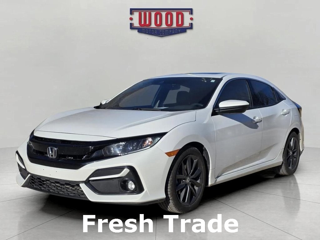 Clean CARFAX. Civic EX, 4D Hatchback, 1.5L I4 DOHC 16V, CVT, FWD, Black Cloth, Adaptive Cruise Control: Adaptive Cruise Control (ACC) with Low-Speed Follow, AM/FM radio: SiriusXM, Automatic temperature control, Electronic Stability Control, Exterior Parking Camera Rear, Front Bucket Seats, Front dual zone A/C, Fully automatic headlights, Heated Front Bucket Seats, Heated front seats, Lane departure: Lane Keeping Assist System (LKAS) active, Outside temperature display, Power driver seat, Power moonroof, Power windows, Radio: 180-Watt HD Audio System, Remote keyless entry, Steering wheel mounted audio controls. Platinum White Pearl 2021 Honda Civic EX FWD CVT 1.5L I4 DOHC 16V