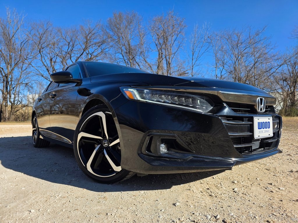 Accord Sport, 4D Sedan, 1.5T I4 DOHC 16V Turbocharged VTEC, CVT, FWD, Crystal Black Pearl, Black w/Fabric w/Synthetic Leather Seat Trim, 8 Speakers, Adaptive Cruise Control: Adaptive Cruise Control (ACC) with Low-Speed Follow, Alloy wheels, Apple CarPlay/Android Auto, Auto High-beam Headlights, Automatic temperature control, Electronic Stability Control, Exterior Parking Camera Rear, Fabric w/Synthetic Leather Seat Trim, Forward collision: Collision Mitigation Braking System (CMBS) + FCW mitigation, Front Bucket Seats, Front Center Armrest, Front dual zone A/C, Fully automatic headlights, Lane Departure Warning System, Power driver seat, Power windows, Radio: 180-Watt AM/FM Audio System, Remote keyless entry, Security system, Steering wheel mounted audio controls, Traction control. Crystal Black Pearl 2022 Honda Accord Sport FWD CVT 1.5T I4 DOHC 16V Turbocharged VTECA solid name you can trust... Wood Motor. Odometer is 11573 miles below market average! 29/35 City/Highway MPG