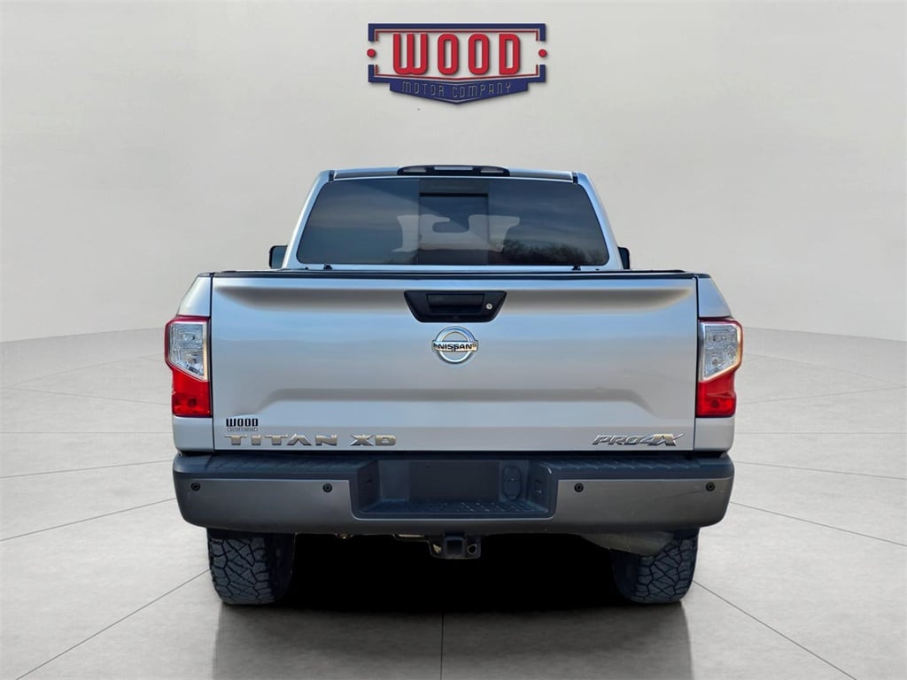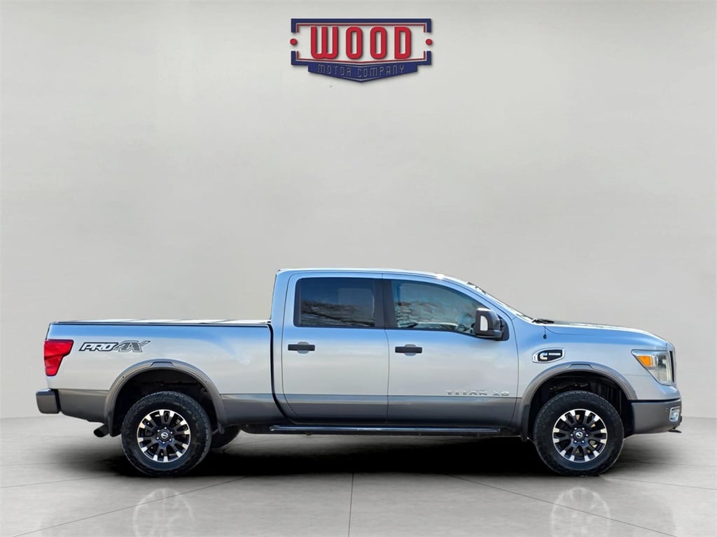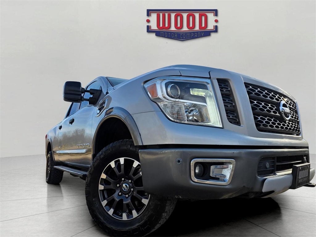 Titan XD PRO-4X, 4D Crew Cab, 5.0L V8, 4WD, Brilliant Silver, Black w/Leather Seat Trim, 110V Outlet In Bed, Around View Monitor, Auto-Dimming Outside Mirror, Auto-Dimming Rear-View Mirror, Electronic Stability Control, Engine Remote Start Function, Front & Rear Parking Sensors, Front fog lights, Heated Front Captain's Seats, Heated Power Tilt/Telescopic Steering Wheel, Heated Rear Seats, Leather Seat Trim w/Contrast Stitching, LED Under Rail Bed Lighting, Memory Outside Driver's Mirror, Power driver seat, Power Slide Rear Window w/Defogger, Power windows, PRO-4X Convenience Package, PRO-4X Luxury Package, PRO-4X Utility & Audio Package, Radio: NissanConnect w/Navigation, Remote keyless entry, Rockford Fosgate Premium Audio w/12 Speakers, Security system, Steering wheel mounted audio controls, Tailgate Area Illumination, TITAN Box, Traction control, Utili-Track System w/4 Tie-Down Cleats, Ventilated Driver & Front Passenger Seats. Brilliant Silver 2016 Nissan Titan XD PRO-4X 4WD Aisin 6-Speed Automatic 5.0L V8