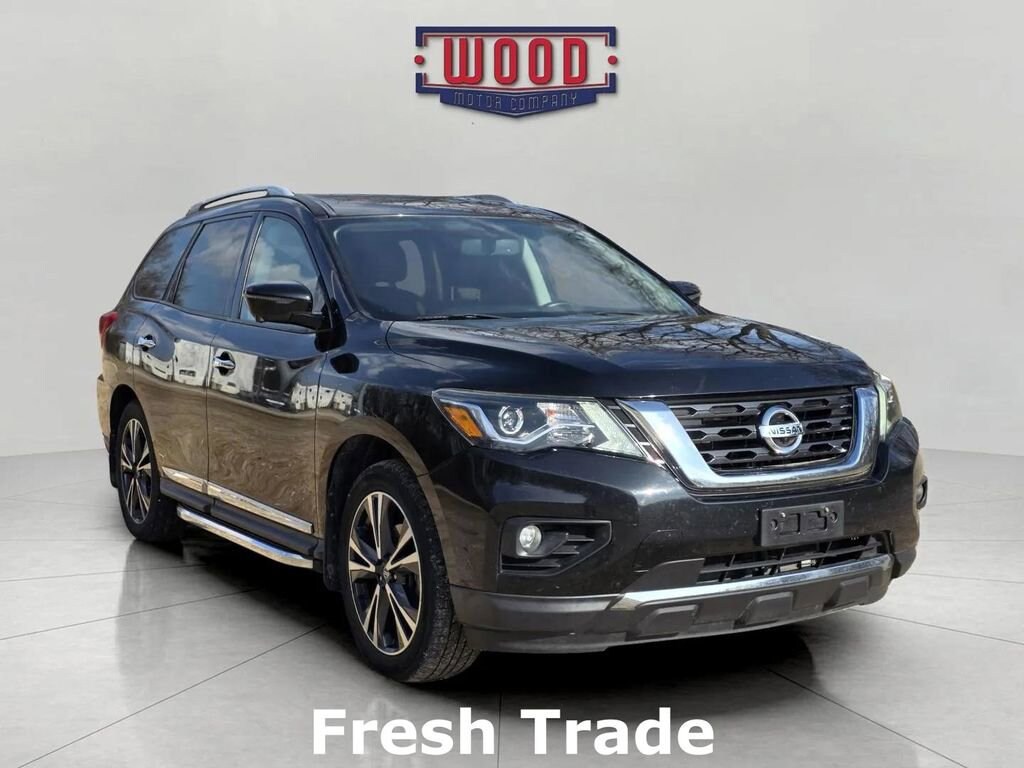 Pathfinder Platinum, 4D Sport Utility, V6, CVT with Xtronic, 4WD, Magnetic Black Pearl, Charcoal w/Leather Seating Surfaces, 13 Speakers, 3rd row seats: bench, AM/FM radio: SiriusXM, Automatic temperature control, Bose Premium Audio System, CD player, Climate Controlled Front Bucket Seats, Electronic Stability Control, Front Bucket Seats, Front dual zone A/C, Fully automatic headlights, Heated front seats, Heated rear seats, Heated steering wheel, Leather Seating Surfaces, Memory seat, Navigation System, NissanConnect w/Navigation & Services, Power driver seat, Power Liftgate, Power moonroof, Power windows, Rear air conditioning, Reclining 3rd row seat, Remote keyless entry, Security system, SiriusXM Traffic, Speed control, Steering wheel memory, Steering wheel mounted audio controls, Traction control, Ventilated front seats. Magnetic Black Pearl 2019 Nissan Pathfinder Platinum 4WD CVT with Xtronic V6