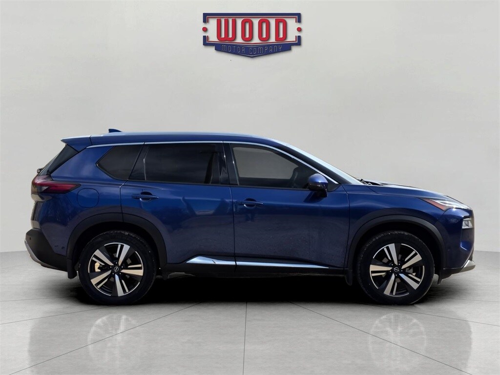 Rogue Platinum, 4D Sport Utility, 1.5L I3 Turbocharged DOHC 12V LEV3-ULEV50 201hp, FWD, Caspian Blue Metallic, Charcoal w/Quilted Semi-Aniline Leather Seat Trim, 10 Speakers, Apple CarPlay/Android Auto, Automatic temperature control, Bose Premium Audio System, Chrome Rear Bumper Protector, Electronic Stability Control, Frameless Rearview Mirror w/Universal Remote, Front Bucket Seats, Front dual zone A/C, Fully automatic headlights, Head-Up Display Package, Heads-Up Display, Heated Front Bucket Seats, Heated front seats, Heated rear seats, Illuminated entry, Illuminated Kick Plates, Memory seat, Navigation system: NissanConnect Navigation, Power driver seat, Power Liftgate, Power moonroof, Power windows, Quilted Semi-Aniline Leather Seat Trim, Radio: AM/FM NissanConnect w/Navigation, Rear air conditioning, Remote keyless entry, Security system, Steering wheel mounted audio controls, Traction control. Caspian Blue Metallic 2022 Nissan Rogue Platinum FWD CVT with Xtronic 1.5L I3 Turbocharged DOHC 12V LEV3-ULEV50 201hp