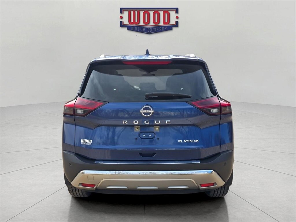 Rogue Platinum, 4D Sport Utility, 1.5L I3 Turbocharged DOHC 12V LEV3-ULEV50 201hp, FWD, Caspian Blue Metallic, Charcoal w/Quilted Semi-Aniline Leather Seat Trim, 10 Speakers, Apple CarPlay/Android Auto, Automatic temperature control, Bose Premium Audio System, Chrome Rear Bumper Protector, Electronic Stability Control, Frameless Rearview Mirror w/Universal Remote, Front Bucket Seats, Front dual zone A/C, Fully automatic headlights, Head-Up Display Package, Heads-Up Display, Heated Front Bucket Seats, Heated front seats, Heated rear seats, Illuminated entry, Illuminated Kick Plates, Memory seat, Navigation system: NissanConnect Navigation, Power driver seat, Power Liftgate, Power moonroof, Power windows, Quilted Semi-Aniline Leather Seat Trim, Radio: AM/FM NissanConnect w/Navigation, Rear air conditioning, Remote keyless entry, Security system, Steering wheel mounted audio controls, Traction control. Caspian Blue Metallic 2022 Nissan Rogue Platinum FWD CVT with Xtronic 1.5L I3 Turbocharged DOHC 12V LEV3-ULEV50 201hpA solid name you can trust... Wood Motor. Recent Arrival! Odometer is 15224 miles below market average! 29/36 City/Highway MPG