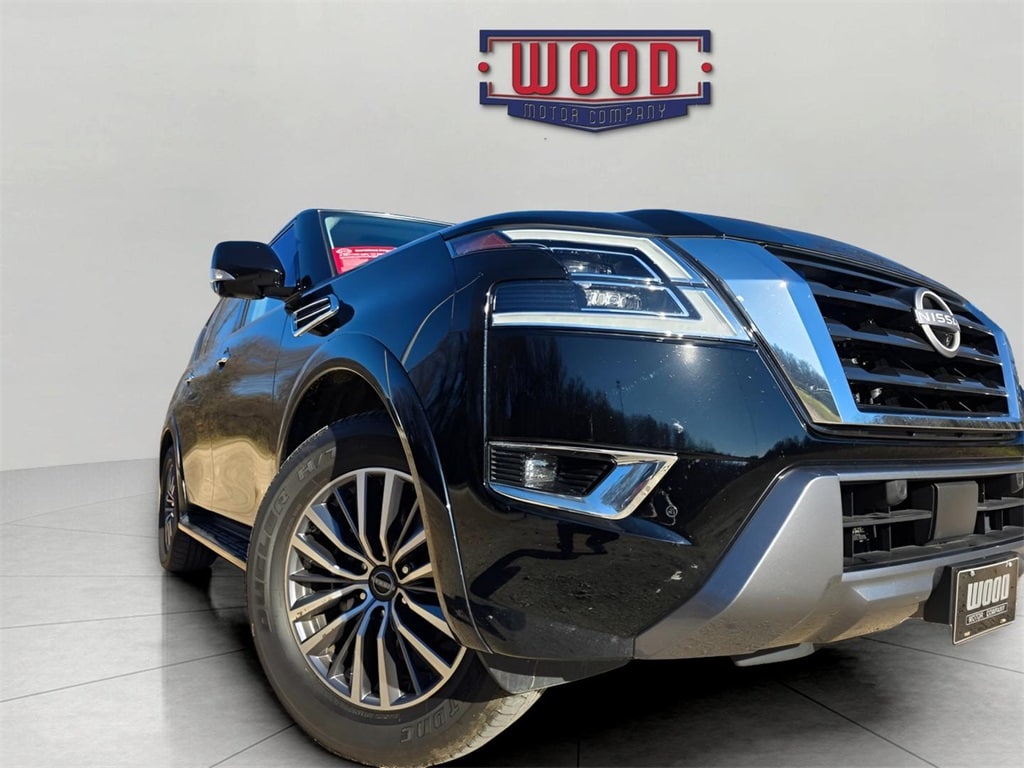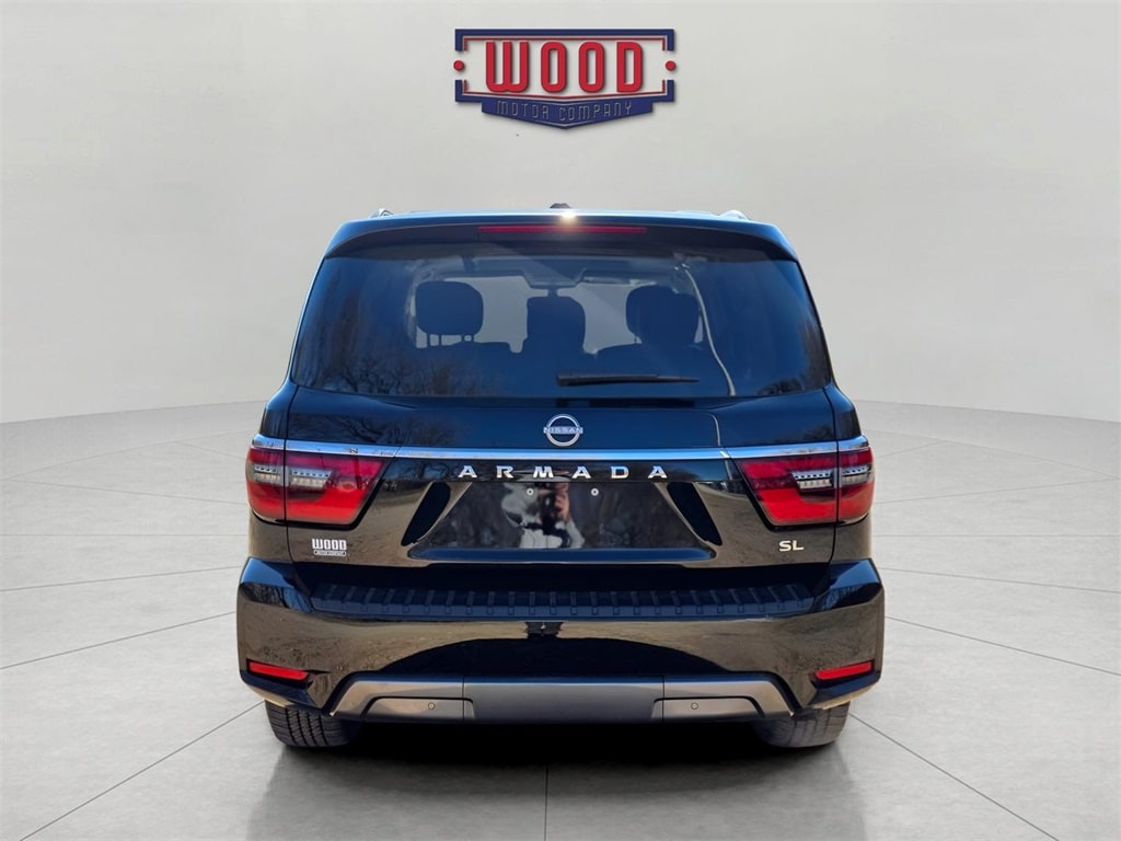 CARFAX One-Owner. Clean CARFAX. Armada SL, 4D Sport Utility, 5.6L V8 DOHC 32V LEV3-ULEV125 400hp, 4WD, Super Black, Charcoal w/Leather-Appointed Seat Trim, 13 Speakers, 3rd row seats: split-bench, AM/FM radio: SiriusXM, Automatic temperature control, Electronic Stability Control, Exterior Parking Camera Rear, Front Bucket Seats, Front dual zone A/C, Fully automatic headlights, Heated Front Bucket Seats, Heated front seats, Heated steering wheel, HVAC memory, Leather-Appointed Seat Trim, Memory seat, Navigation System, Power driver seat, Power Liftgate, Power moonroof, Power passenger seat, Power windows, Radio: NissanConnect w/SiriusXM, Rear air conditioning, Reclining 3rd row seat, Remote keyless entry, Security system, Speed control, Split folding rear seat, Steering wheel memory, Steering wheel mounted audio controls, Telescoping steering wheel, Tilt steering wheel, Traction control, Variably intermittent wipers, Wheels: 20" x 8J Painted Alloy. Super Black 2024 Nissan Armada SL 4WD 7-Speed Automatic 5.6L V8 DOHC 32V LEV3-ULEV125 400hp