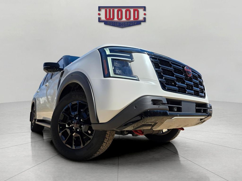 CARFAX One-Owner. Clean CARFAX. Armada PRO-4X, 4D Sport Utility, 3.5L DOHC, 9-Speed Automatic, 4WD, Aspen White Tricoat/Super Black, Charcoal Leather, 3rd row seats: split-bench, Air Conditioning, Automatic temperature control, Electronic Stability Control, Front Bucket Seats, Front dual zone A/C, Fully automatic headlights, Heated Front Bucket Seats, HVAC memory, Memory seat, Navigation System, Power driver seat, Power steering, Power windows, PRO-4X Unique Quilted Leather Seat Trim, Radio: NissanConnect w/SiriusXM 360L, Rear air conditioning, Remote keyless entry, Security system, Steering wheel memory, Steering wheel mounted audio controls, Telescoping steering wheel, Tilt steering wheel. Aspen White Tricoat/Super Black 2025 Nissan Armada PRO-4X 4WD 9-Speed Automatic 3.5L DOHC