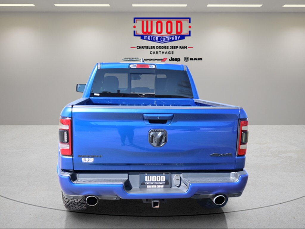 Blue Streak Pearlcoat 2019 Ram 1500 Rebel 4WD 8-Speed Automatic HEMI 5.7L V8 Multi Displacement VVT 115V Auxiliary Rear Power Outlet, 2 USB Full Function/Charge Only Media Hub, 3.92 Rear Axle Ratio, 8.4" Touchscreen Display, Air Conditioning ATC w/Dual Zone Control, Apple CarPlay, Auto-Dimming Exterior Driver Mirror, Auto-Dimming Rear-View Mirror, Brake assist, Compass, Delay-off headlights, Driver door bin, Electronic Stability Control, Exterior Mirrors Courtesy Lamps, Exterior Mirrors w/Supplemental Signals, Foam Bottle Insert (Door Trim Panel), Front fog lights, Fully automatic headlights, Google Android Auto, Heated door mirrors, Heated Front Seats, Heated Steering Wheel, Illuminated entry, Integrated Center Stack Radio, Leather steering wheel, Outside temperature display, Overhead console, Panic alarm, ParkSense Front/Rear Park Assist w/Stop, ParkView Rear Back-Up Camera, Passenger vanity mirror, Power Adjustable Pedals, Power door mirrors, Power driver seat, Power Heated Fold Away Mirrors, Power steering, Power windows, Power-Folding Mirrors, Radio: Uconnect 4 w/8.4" Display, Rain Sensitive Windshield Wipers, Rear Dome w/On/Off Switch Lamp, Rear step bumper, Rear Underseat Compartment Storage, Rear Wheelhouse Liners, Rear Window Defroster, Rebel Level 2 Equipment Group, Remote keyless entry, Remote Proximity Keyless Entry, Remote Start System, Security Alarm, Single Disc Remote CD Player, Speed control, Split folding rear seat, Sun Visors w/Illuminated Vanity Mirrors, Tachometer, Telescoping steering wheel, Tilt steering wheel, Trailer Brake Control, Trip computer, Universal Garage Door Opener, Variably intermittent wipers, Voltmeter, Wheels: 18" x 8" Painted Black.