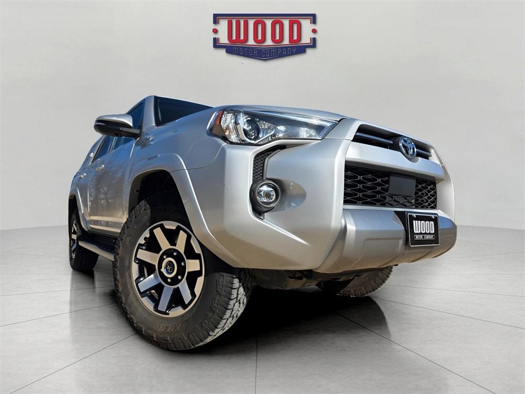 Clean CARFAX. 4Runner TRD Off-Road Premium, 4D Sport Utility, 4.0L V6 DOHC 24V, 4WD, Classic Silver Metallic, Black/Graphite w/Leather Seat Trim, Apple CarPlay/Android Auto, Electronic Stability Control, Front fog lights, Garage Door Opener, Garage door transmitter: HomeLink, Navigation System, Power driver seat, Power windows, Radio: Premium Audio w/Dynamic Navigation, Remote keyless entry, Security system, Speed control, Steering wheel mounted audio controls, Traction control. Classic Silver Metallic 2023 Toyota 4Runner TRD Off-Road Premium 4WD 5-Speed with ECT 4.0L V6 DOHC 24V